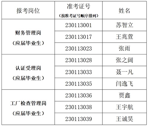 笔试成绩达到合格分数线60分及以上方具备面试备选资格。根据笔试成绩由高到低的顺序,每个岗位按照面试人选与拟聘用人员3:1的比例确定进入面试人员(笔试成绩并列的,一并进入面试),不足3:1比例时,按照实际人数组织面试。面试人员名单如下: