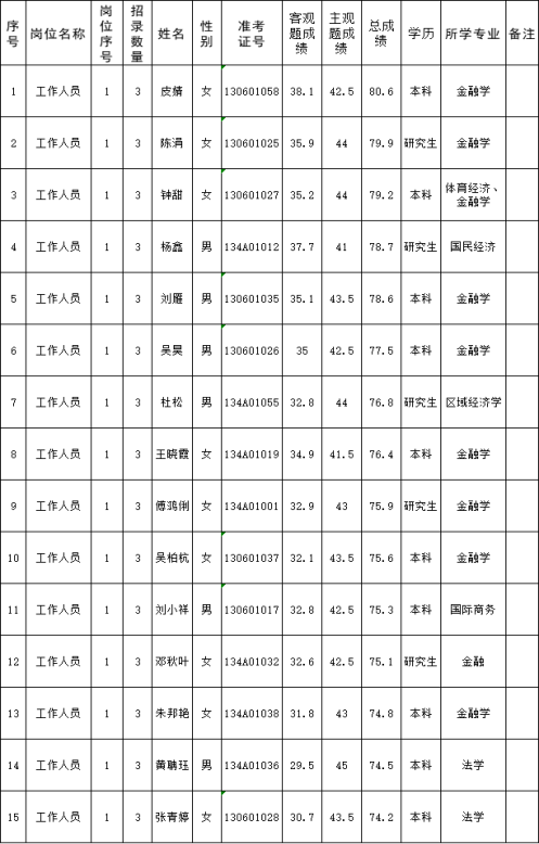 贵州省进出口融资担保有限责任公司2024年公开招聘面试人员名单