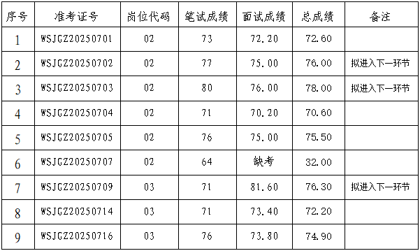 根据《黔西南州退役军人事务局下属事业单位2025年公开考聘事业人员工作方案》有关规定,黔西南州退役军人事务局下属事业单位2025年公开考聘事业人员报名及资格审查、笔试、面试环节工作已结束,现将面试成绩及总成绩公示如下: