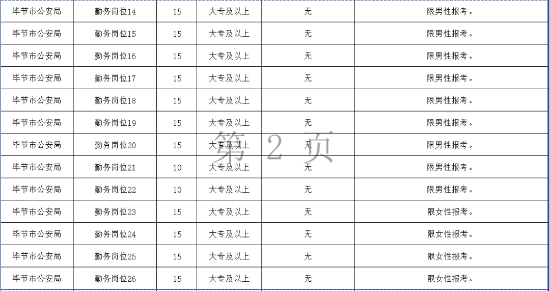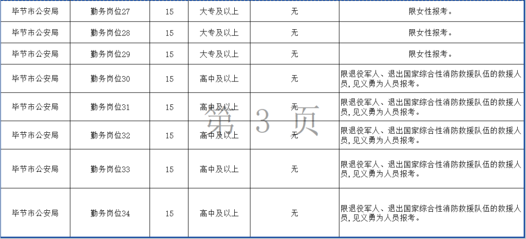 根据工作需要,毕节市公安局2025年面向社会公开招聘警务辅助人员。现将有关事项公告如下: