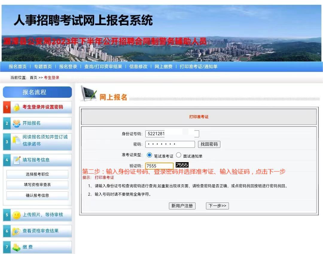 温馨提示:湄潭县公安局2023年下半年公开招聘合同制警务辅助人员网上打印准考证时间:2023年12月12日至12月15日,打印地址:登录报名系统(http://zk.hnlsrl.com/index.php),请考生自行下载打印准考证。逾期不打印准考证者,视为自动放弃,后果由考生自行负责。同时,准考证使用贯穿笔试、面试、体能测试等招聘全过程,考生打印后务必妥善保管。