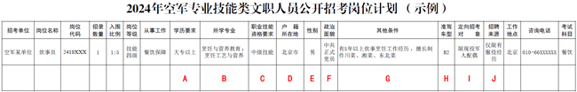 根据《2024年空军专业技能类文职人员公开招考公告》,空军今年计划招考专业技能类文职人员2286名,报名时间为2024年8月10日8:00至2024年8月19日18:00。招考岗位有保管员、司机、炊事员、文印员、汽车修理工兼司机等专业技能三级以下岗位,工作地点分布在北京、广州、南京、成都、沈阳等全国26个省(自治区、直辖市)的71个地级以上城市。为帮助广大考生高效完成报名、顺利通过资格审核,现发布《2024年空军专业技能类文职人员公开招考报考指南》,就选择报考岗位、填报个人信息、提交证明材料等网上报名和资格审核有关事项进一步说明如下: