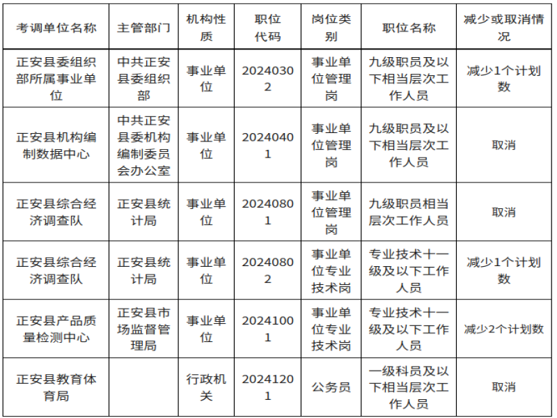 截止2024年9月29日,对报名减少考调计划和取消的岗位公示如下: