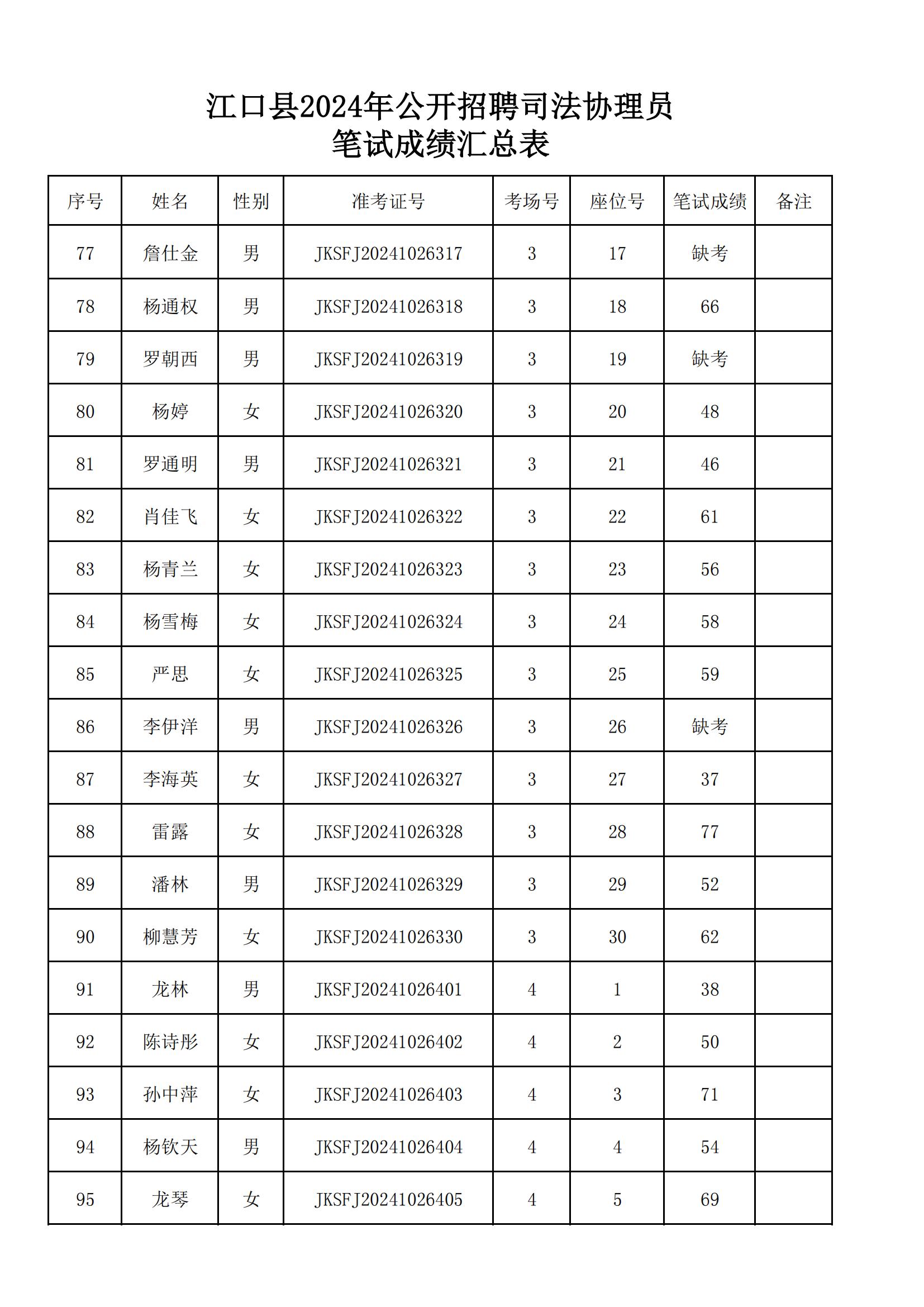 附件:《江口县2024年公开招聘司法协理员笔试成绩汇总表》