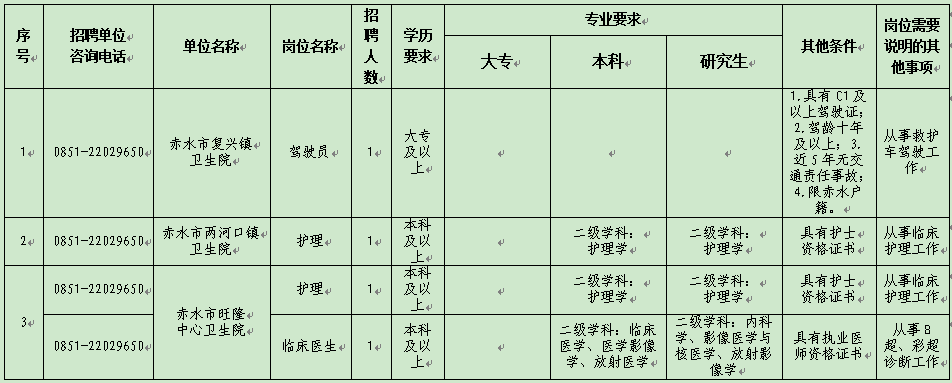 咨询电话:赤水市中医医院人事科0851-22029650。